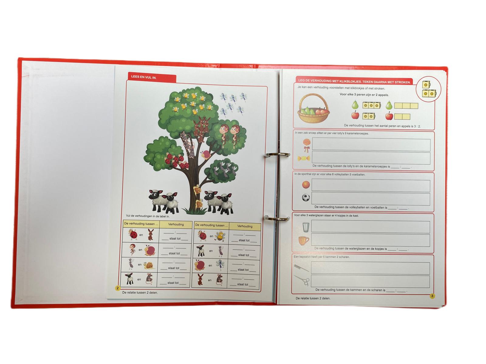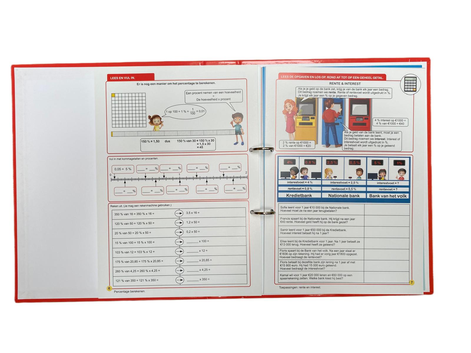 Het pakket bestaat uit een map met oefenfiches voor het vijfde leerjaar en een map met oefenfiches voor het zesde leerjaar, met bijhorende instructieboekjes.