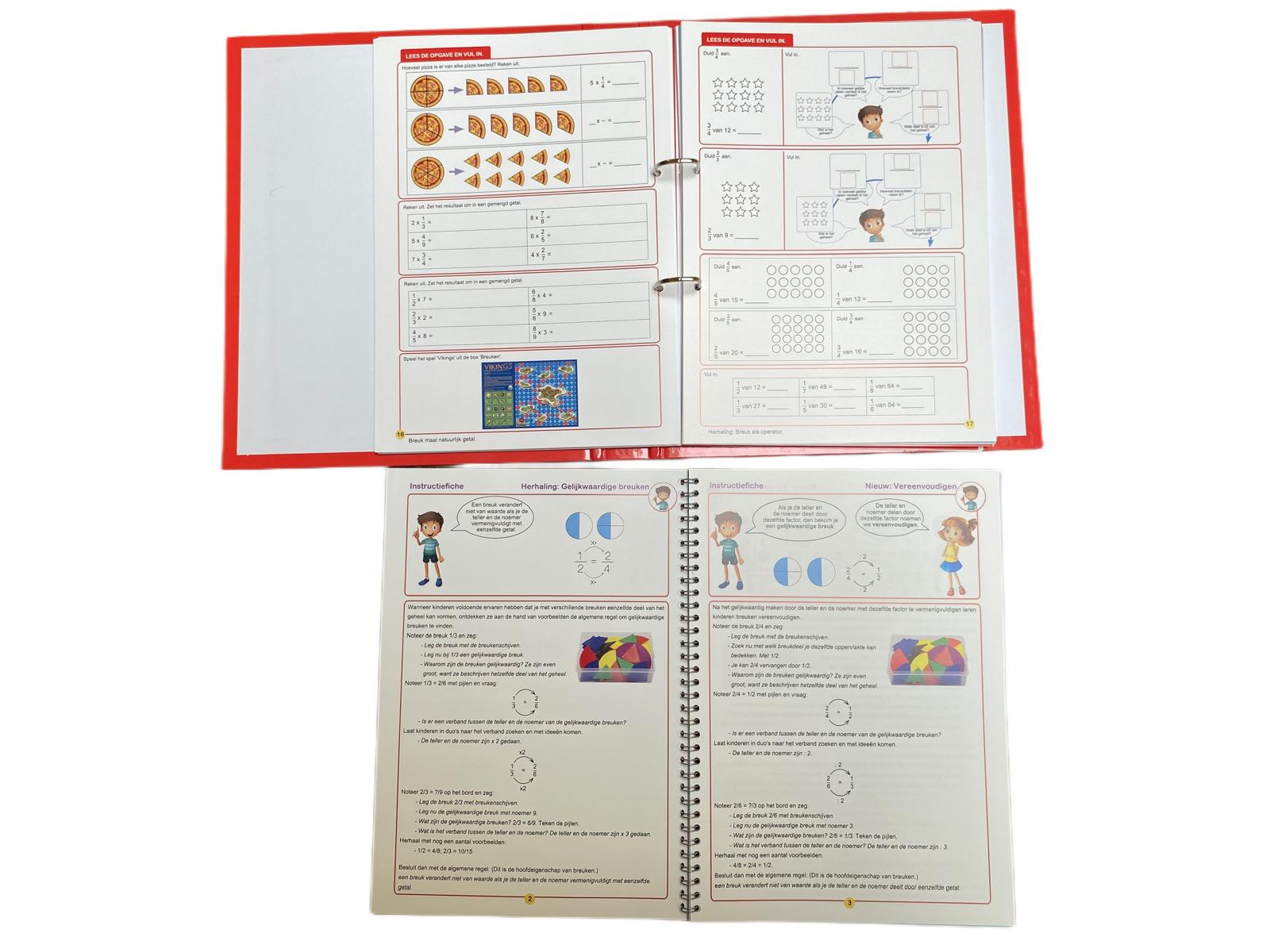 De map bevat fiches om breuken te begrijpen en in te oefenen. Stapje voor stapje wordt elk breukenconcept geleerd: breuken vereenvoudigen, ongelijknamige breuken vergelijken en optellen en aftrekken, bewerkingen met gemengde getallen, breuken vermenigvuldigen met een natuurlijk getal, een breuk al resultaat van een deling, ... Daarnaast wordt er verder geoefend op het oplossen van vraagstukken met breuken.