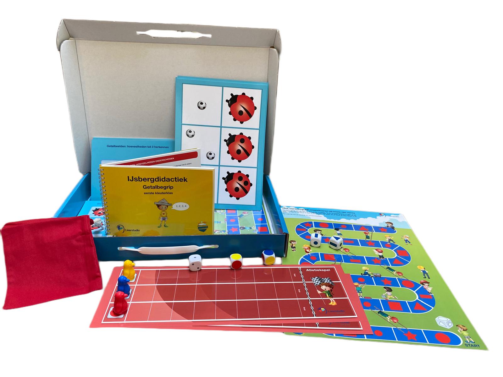De box bevat materiaal om spelenderwijs met getalbegrip bezig te zijn voor de jongste kleuters.