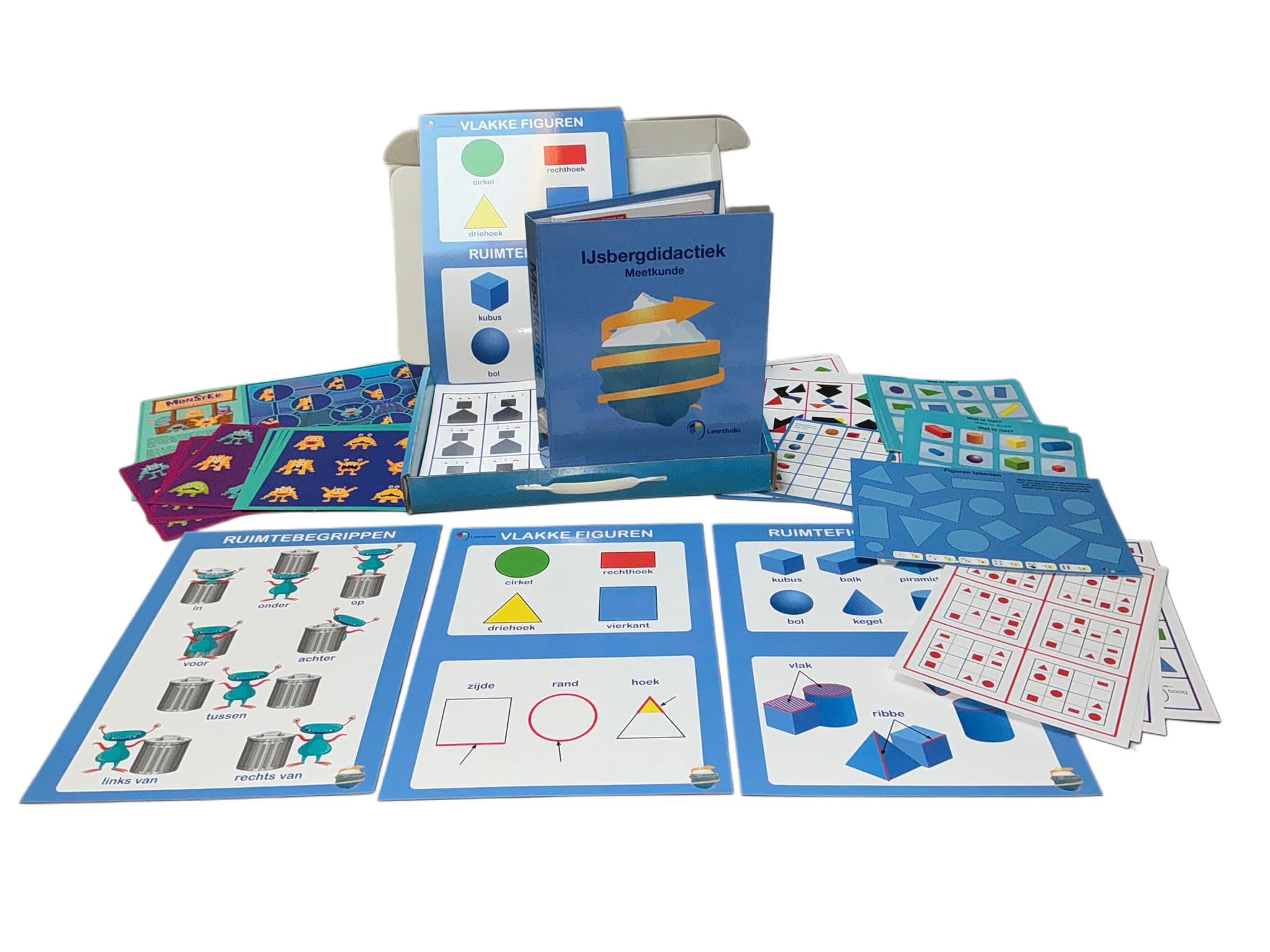 De map meetkunde voor het eerste en tweede leerjaar is er. Deze sluit perfect aan op de box meetkunde voor kleuters.