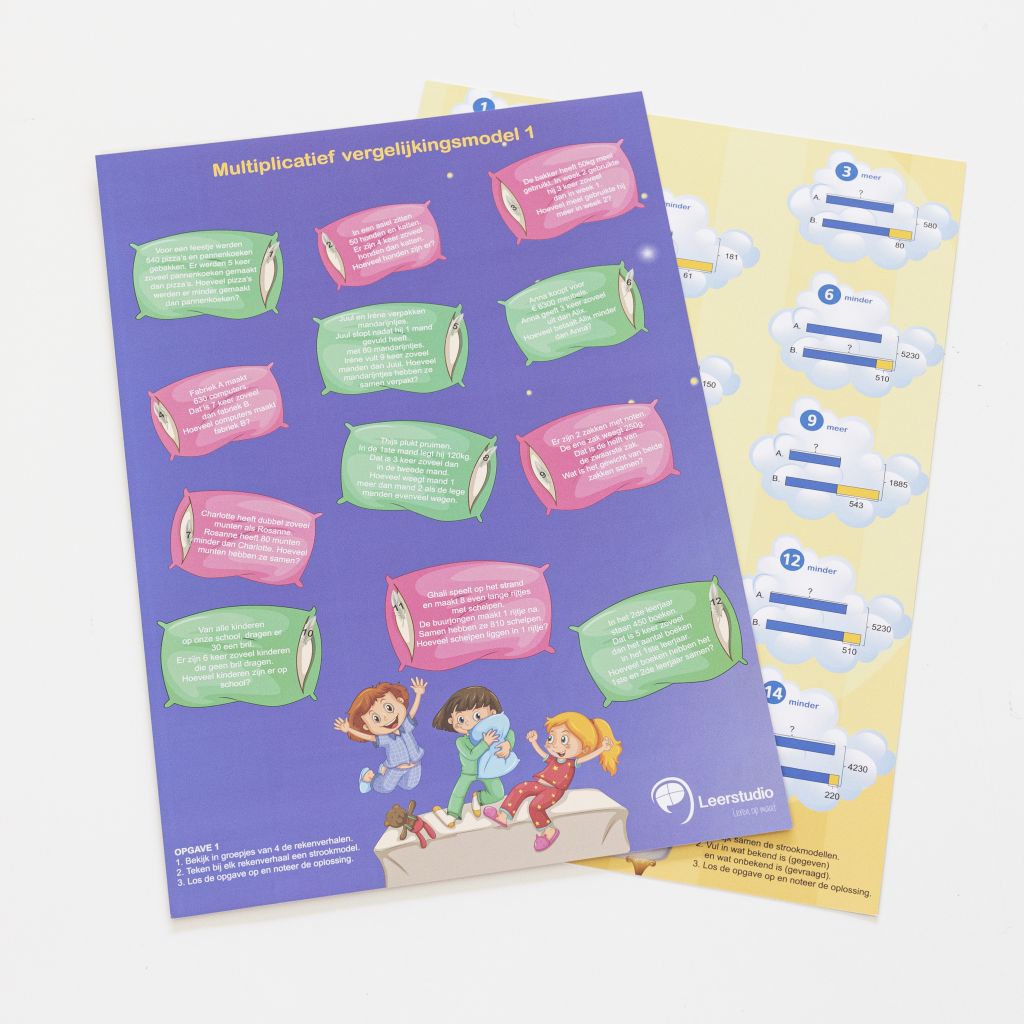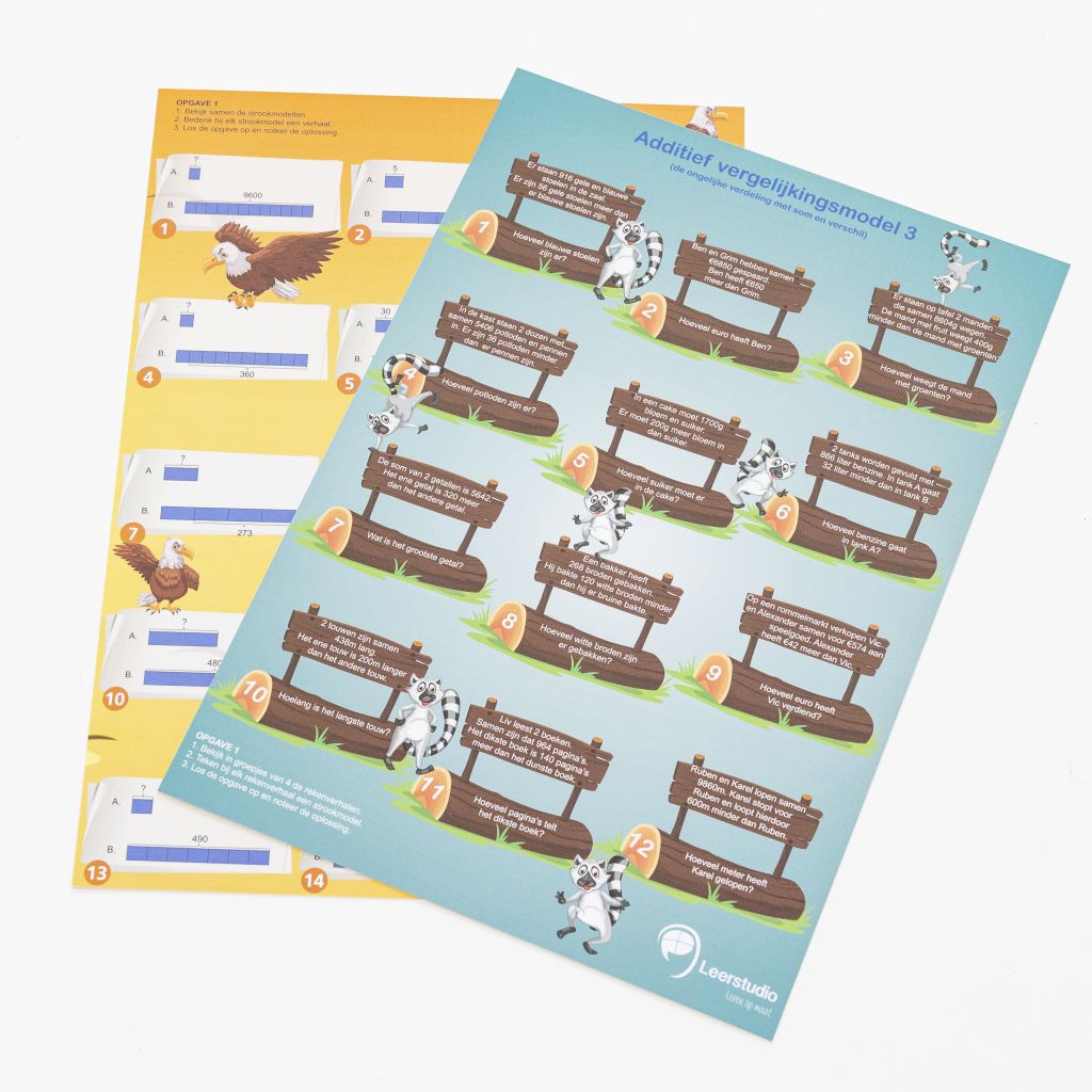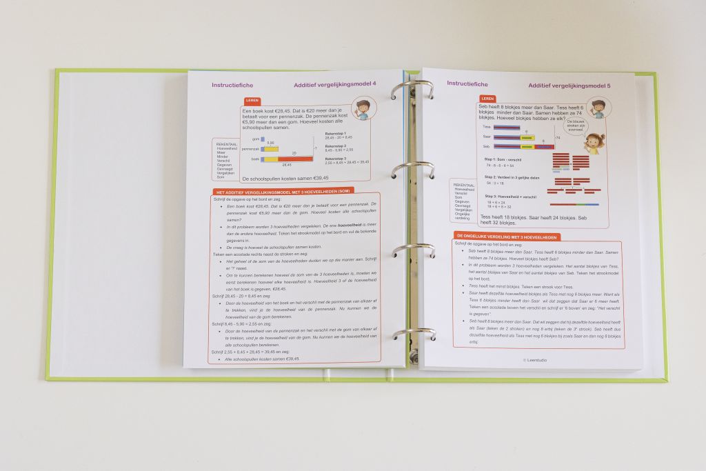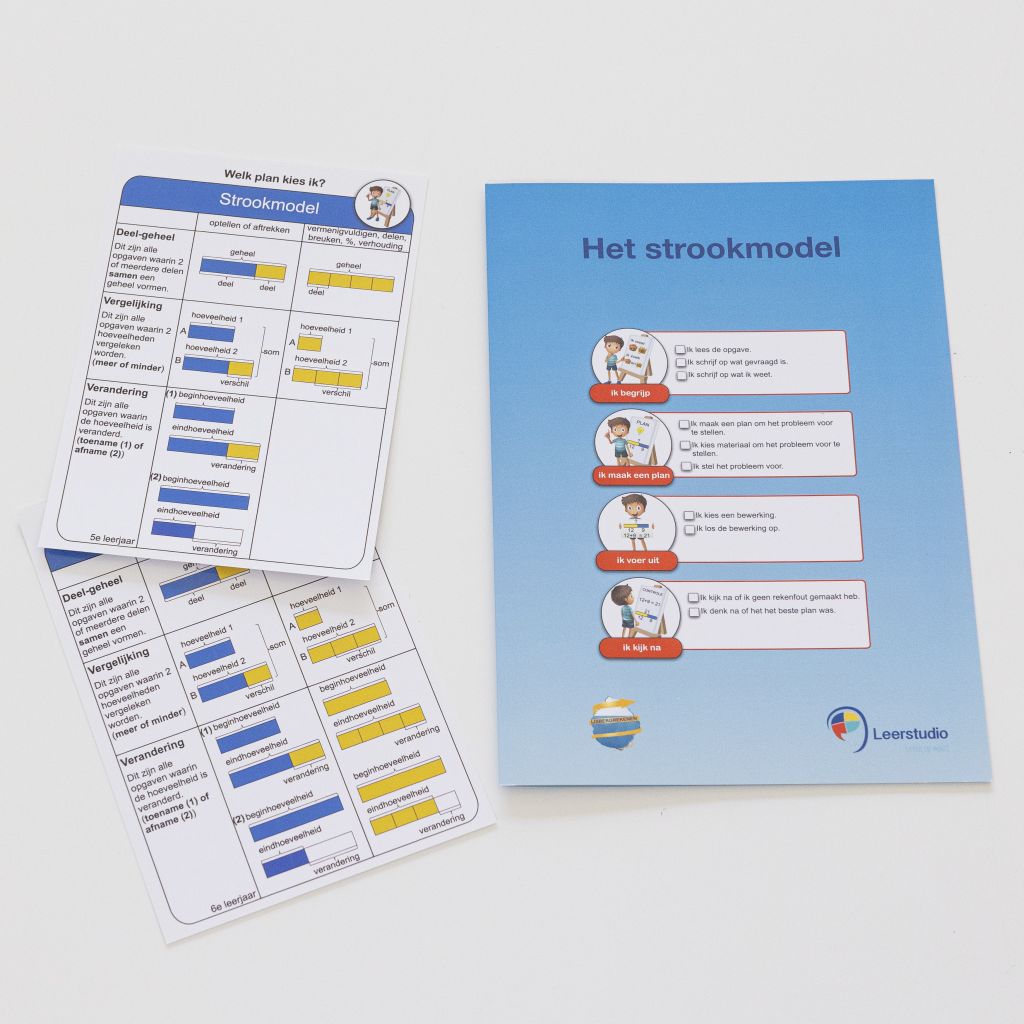 Problemen leren oplossen aan de hand van het strookmodel. In de map vind je de theorie, instructiefiches voor het 5e & 6e leerjaar en kopieerbladen met oefeningen. Bij de map hoort een totaaloverzicht van het strookmodel voor de leerkracht, A3-placemats voor in de klas en stappenplannen voor de leerlingen.