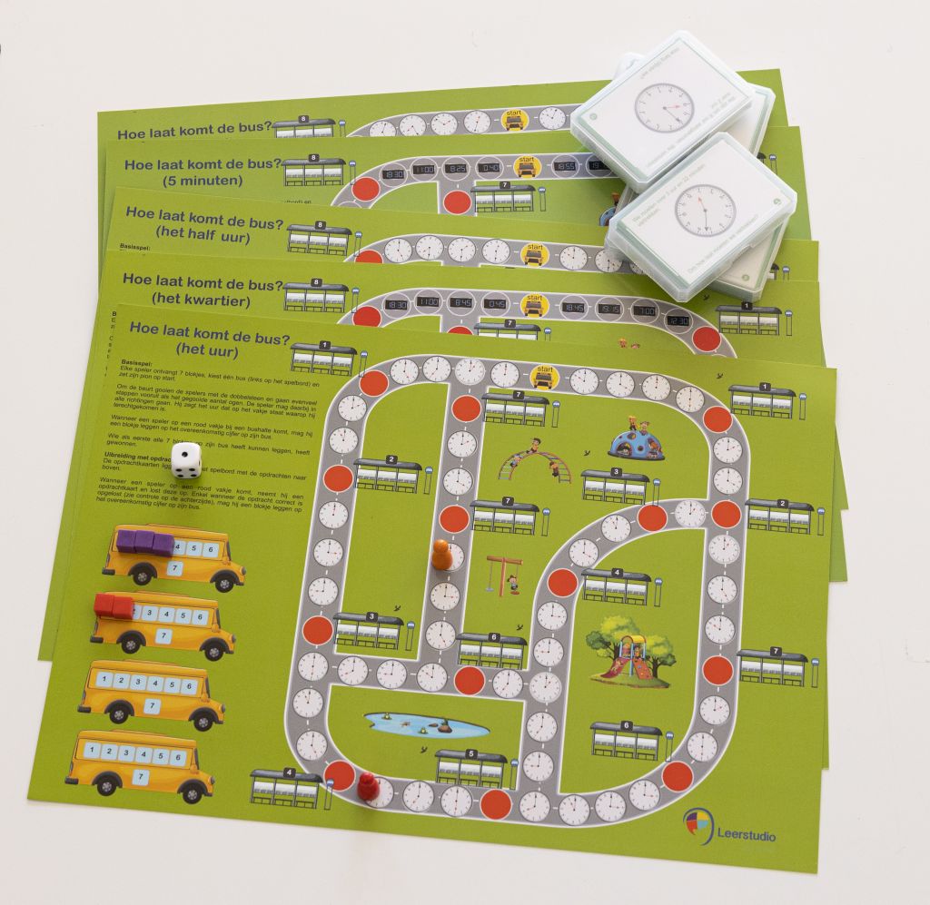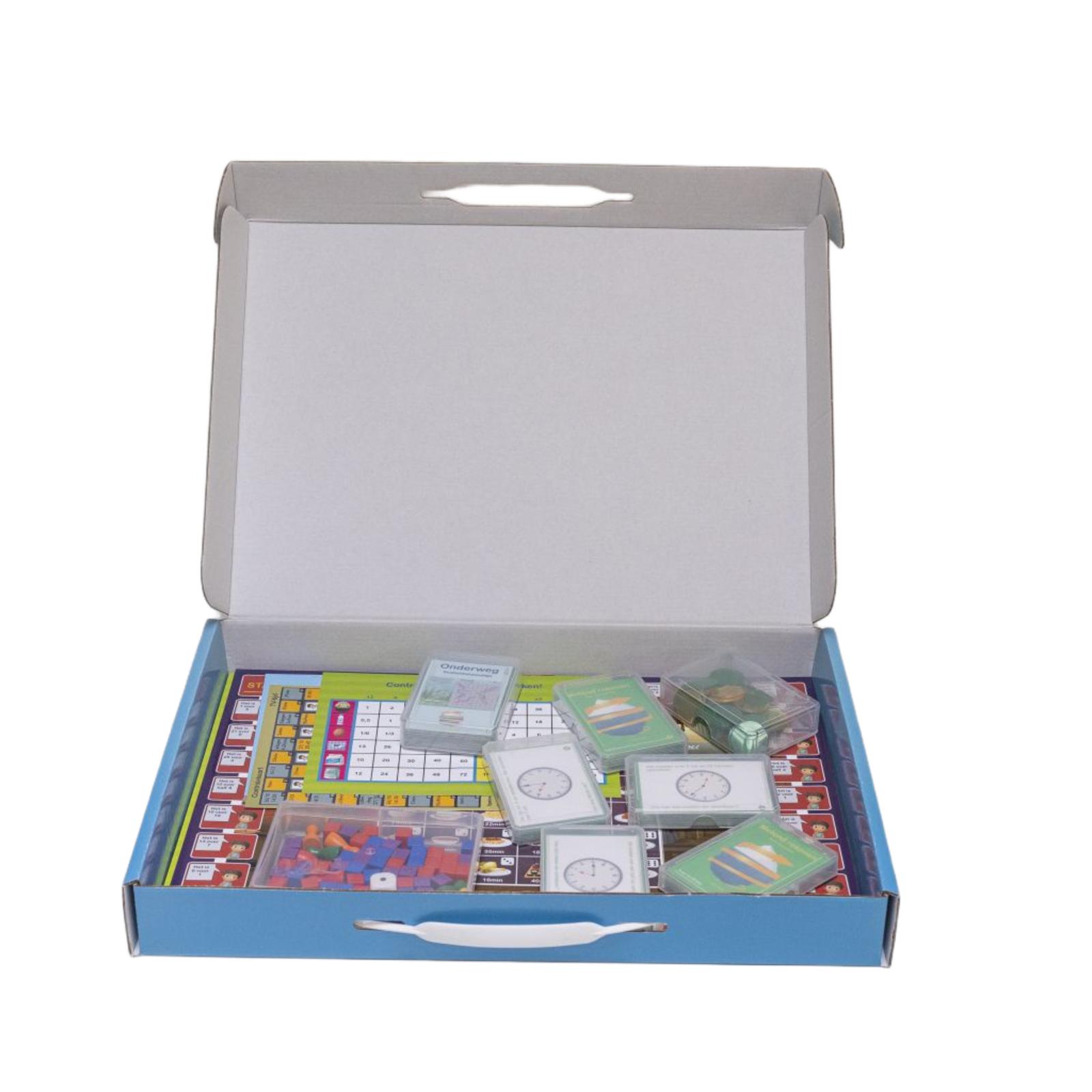 Speels oefenen op het lezen van de klok (analoog en digitaal), tijdsduur en snelheid. De box bevat 22 verschillende spelletjes (op 350gr, gefolieerd - met toebehoren) voor de hele lagere school.
