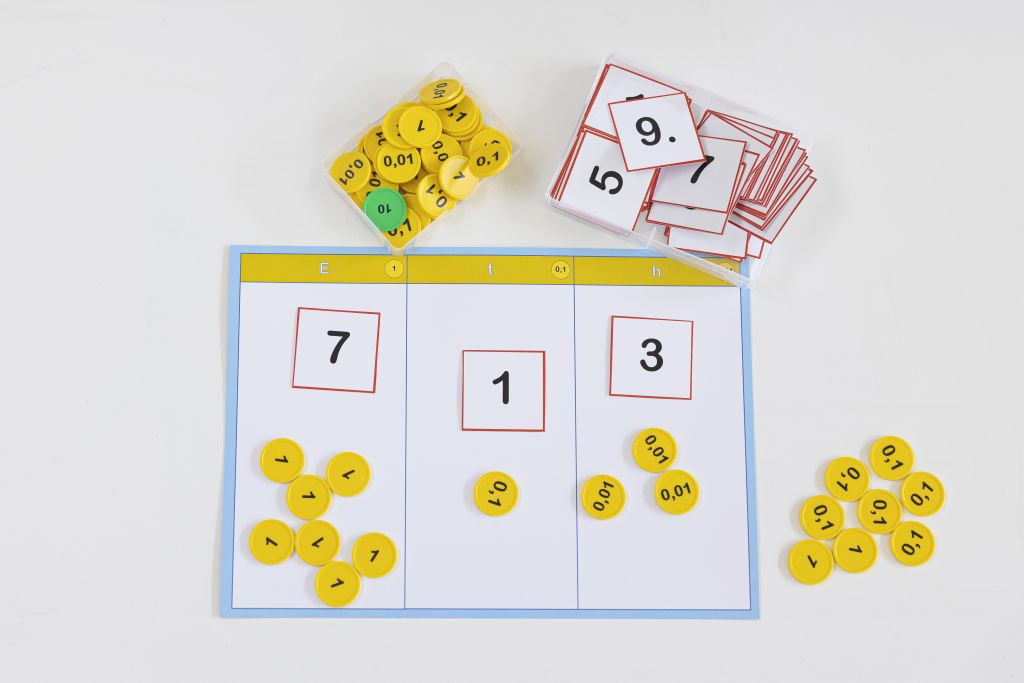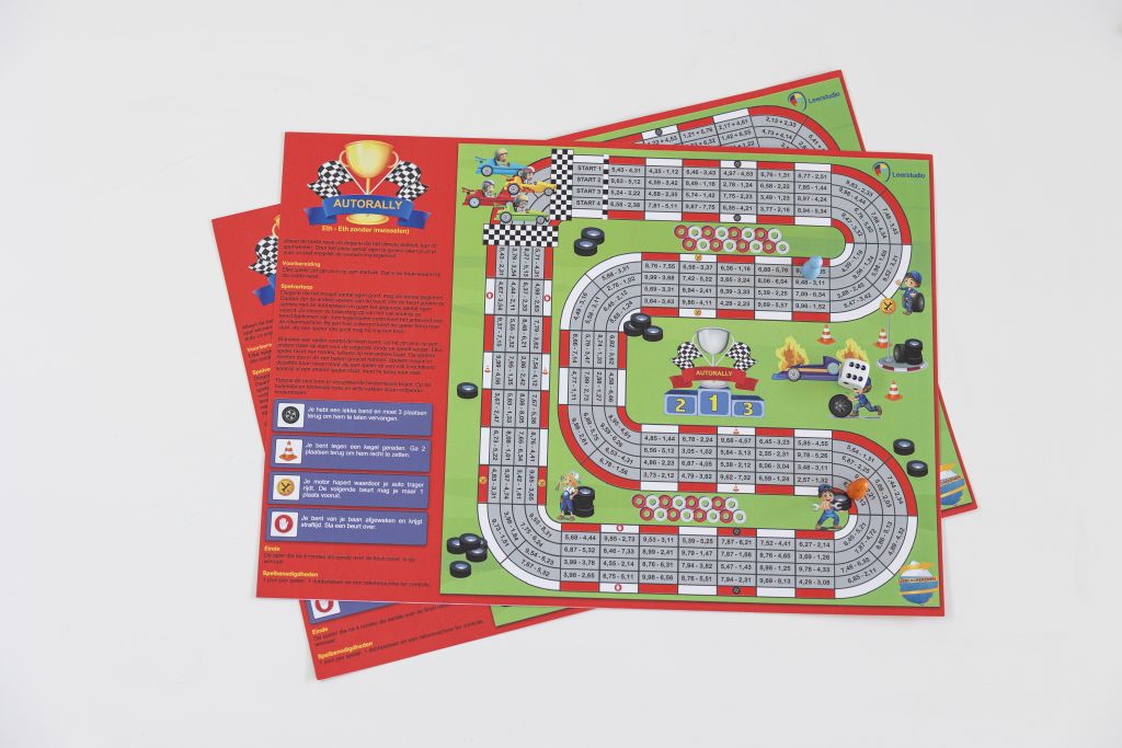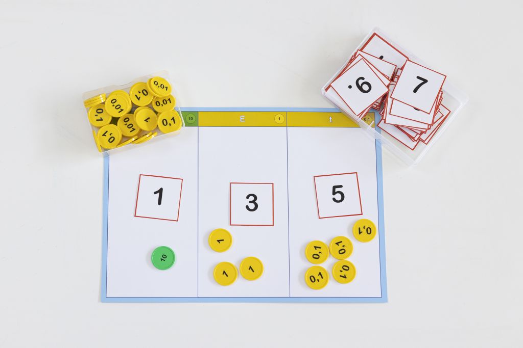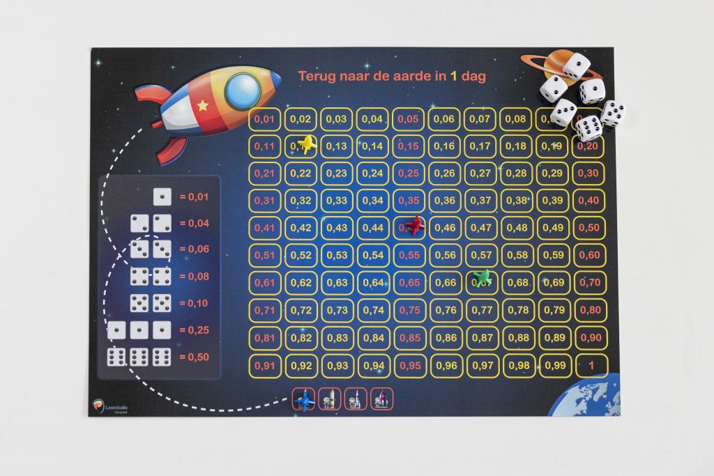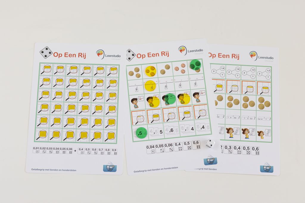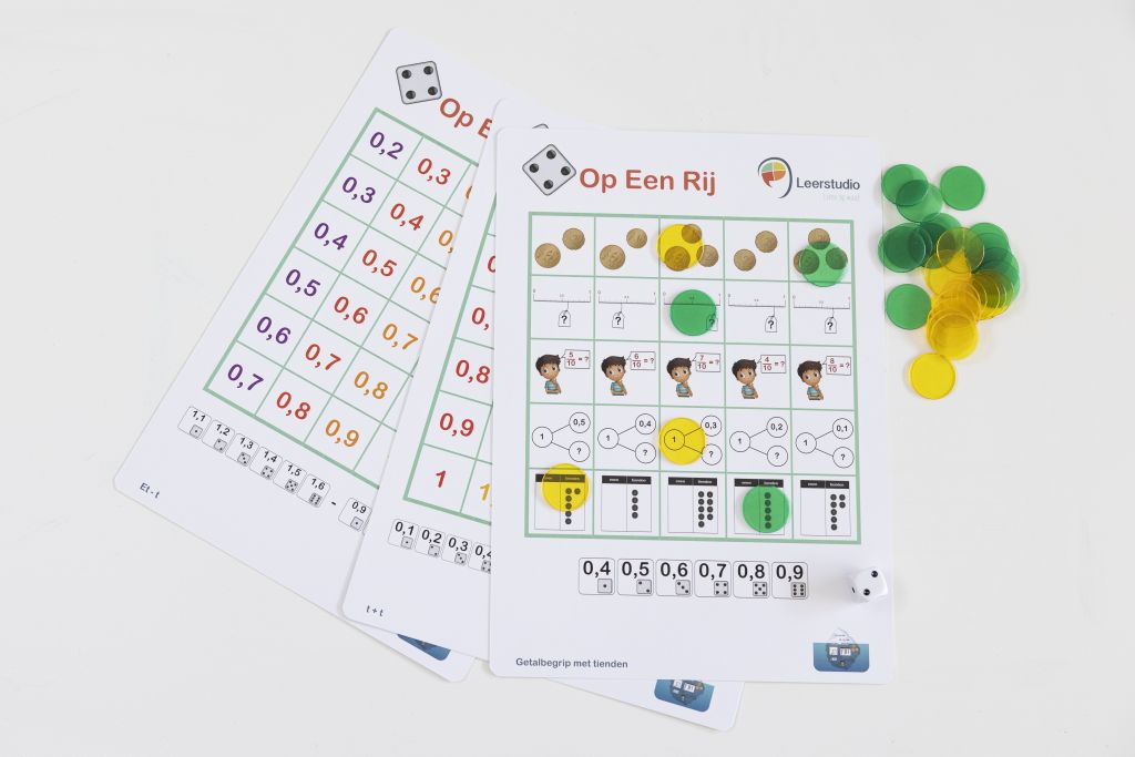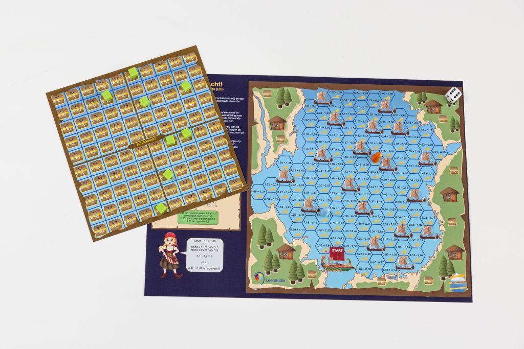 De box bevat 59 verschillende spelletjes (op 350gr, gefolieerd - met de nodige toebehoren) voor het hele domein (4e t/m 6e leerjaar) van de kommagetallen:
