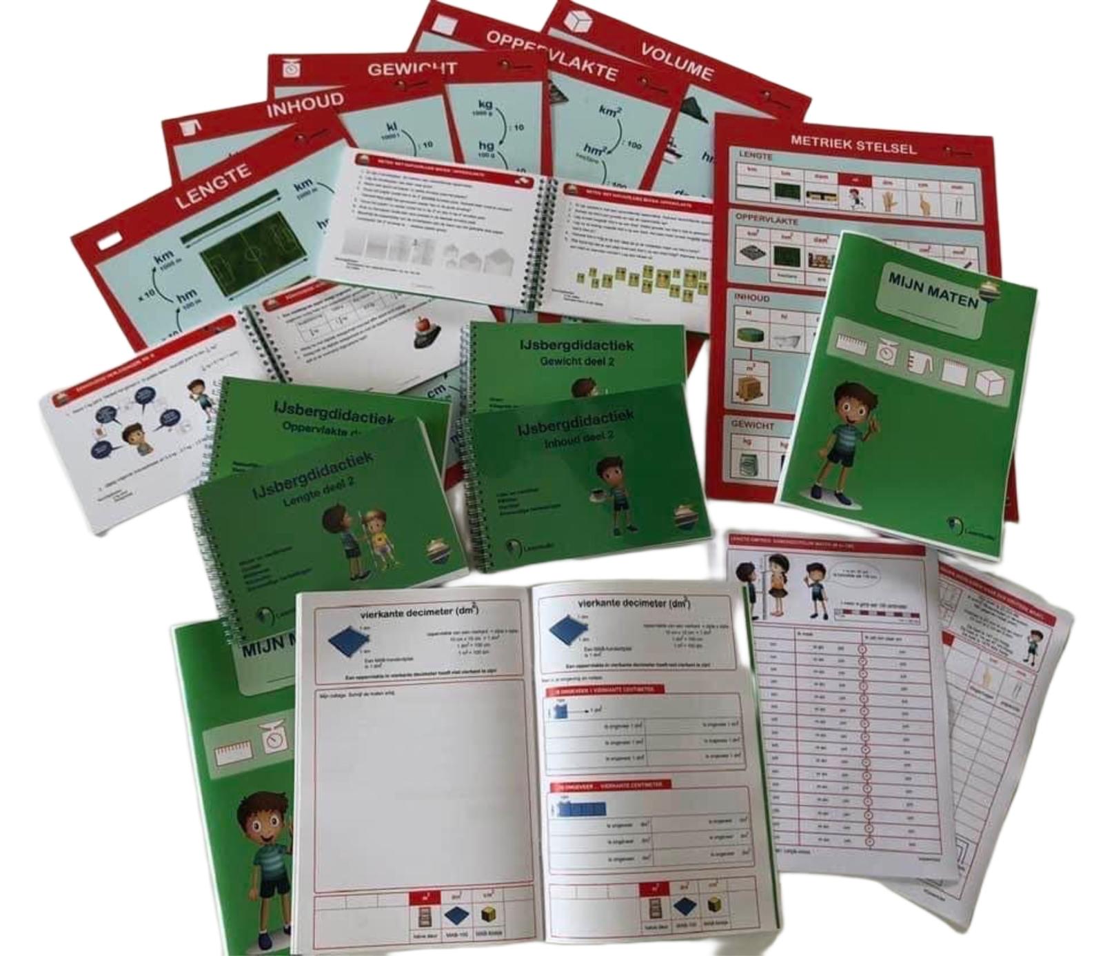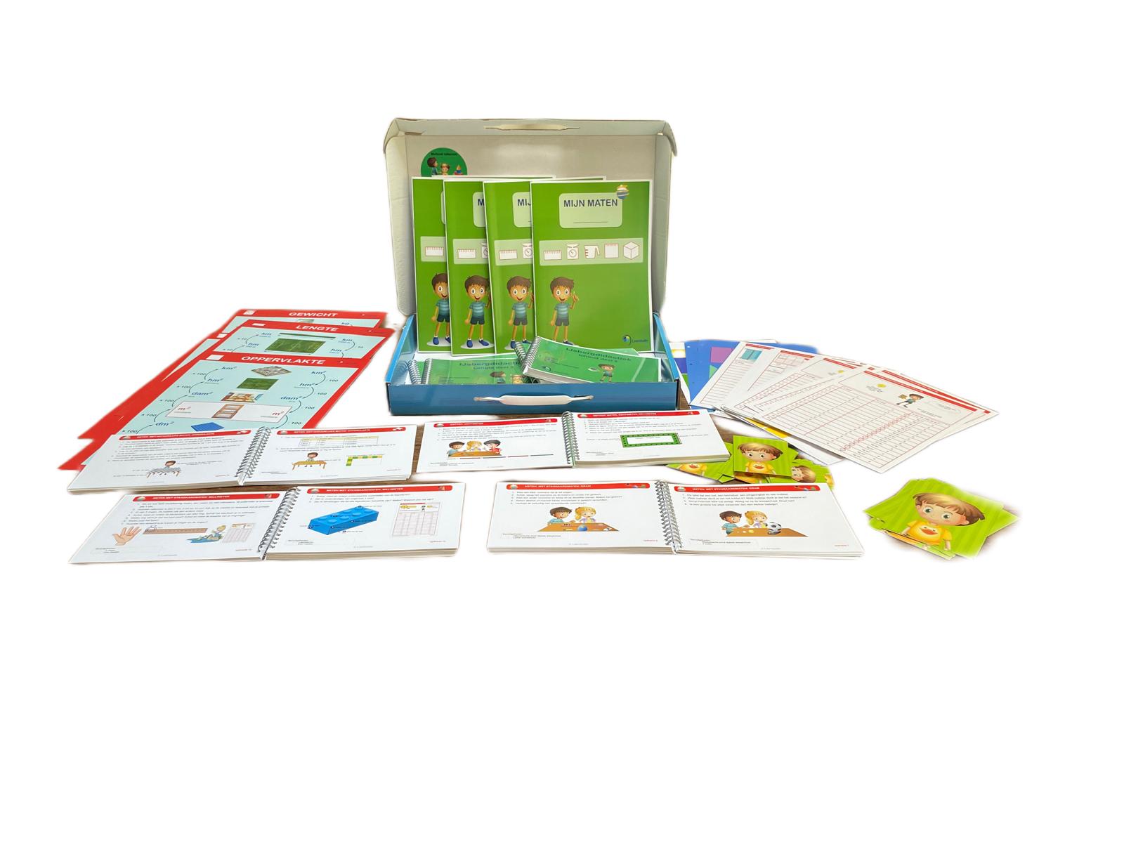 Daarbij horen 4 referentiematenposters, 5 matenpaspoorten, materiaal om te handelen en bladen om de meetresultaten te noteren.